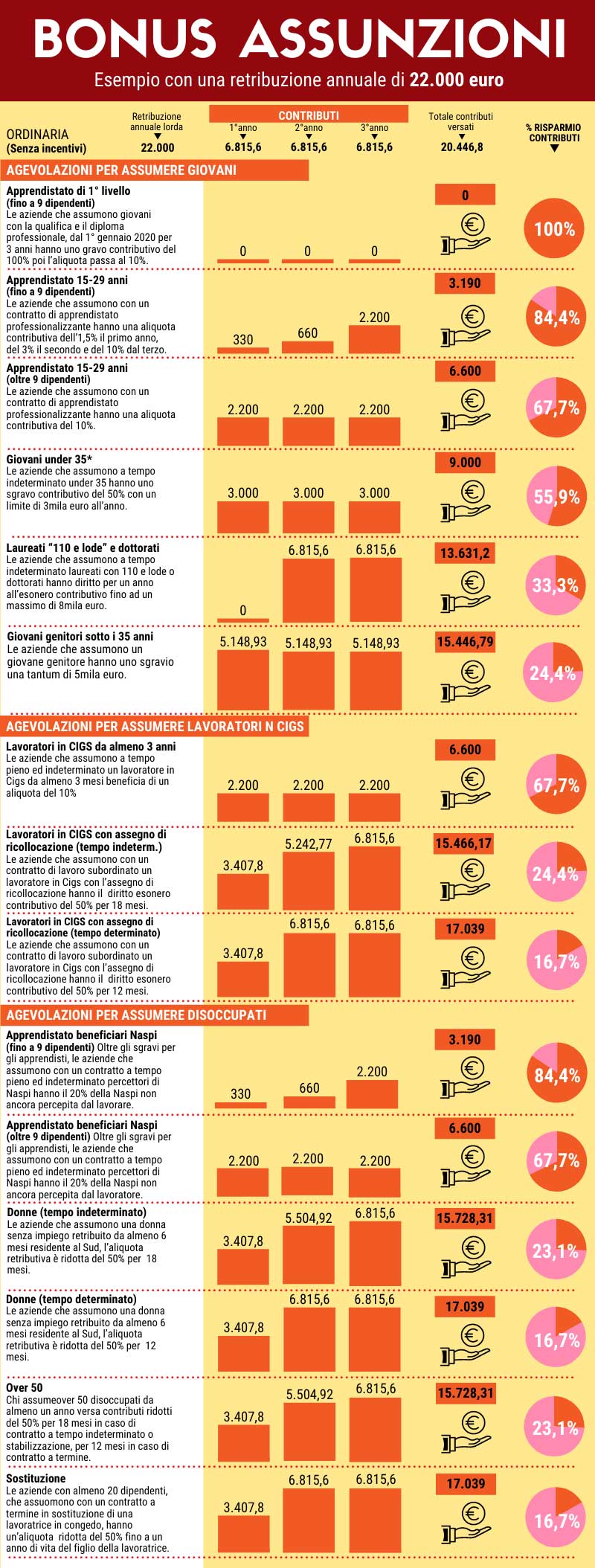 Ecco concretamente riassunti in una immagine tutti i benefici che puoi ottenere assumendo un lavoratore con una retribuzione media di 22mila euro.